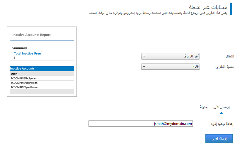 الحساب غير النشط هو الحساب الذي استلم رسائل بريد إلكتروني ولم يرسل أي رسائل بريد إلكتروني في نطاق البيانات الذي يغطيه.