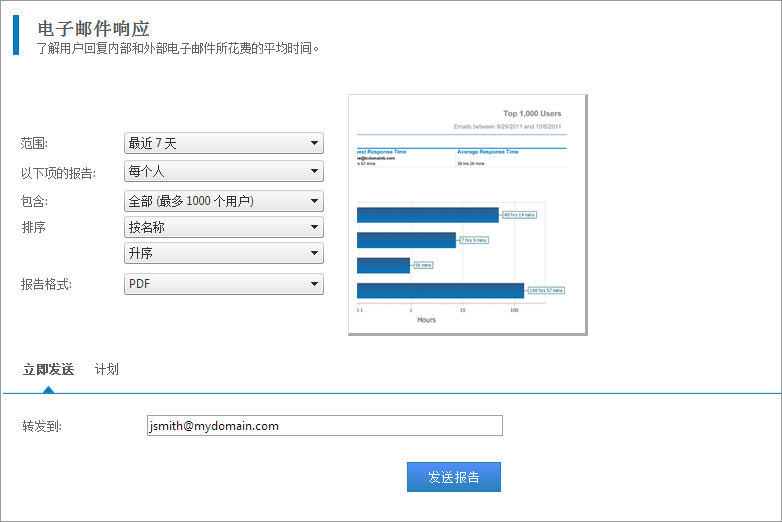 电子邮件响应报告显示员工回复电子邮件所花费的平均时间。