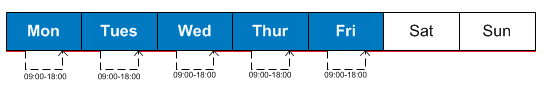 情景 1: 某个组织的工作时间为星期一到星期五,上班时间和下班时间在同一天内,例如从上午 9.00 到下午 6.00。