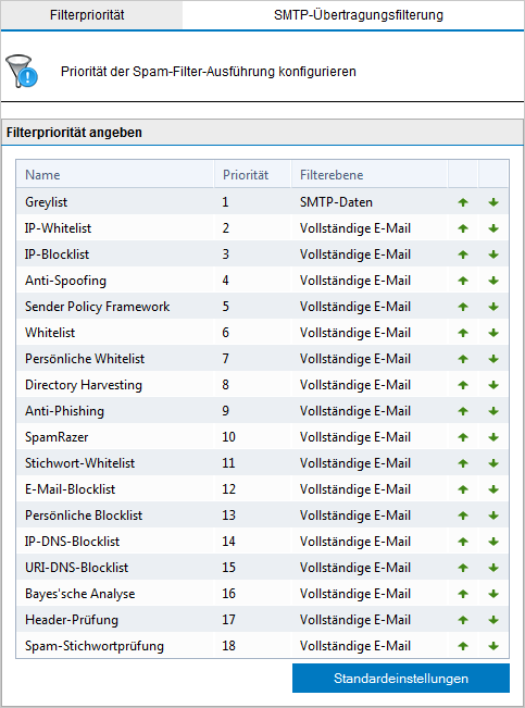 Sortieren der Anti-Spam-Filter nach Priorität