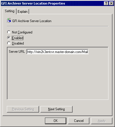 Setting GFI Archiver server URL in Windows® Server GPOGroup Policy Objects