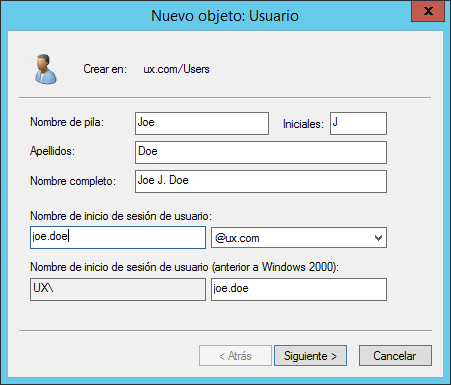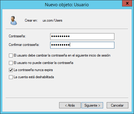 Creación de un nuevo usuario en Active Directory
