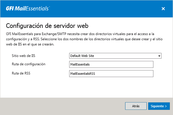 Especifique el nombre del directorio virtual de GFI MailEssentials.