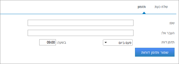6. ברשימה הנפתחת תזמן דוח, בחר את תדירות ההפעלה של הדוח. האפשרויות הזמינות הן: פעם ביום, פעם בשבוע או פעם בחודש.