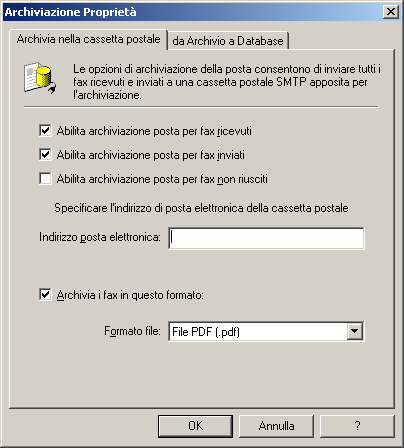 Utilizzare questa opzione per inviare a un indirizzo di posta elettronica una copia dei fax in entrata, in uscita e/o non riusciti. Include i rapporti di trasmissione e il fax come allegato.