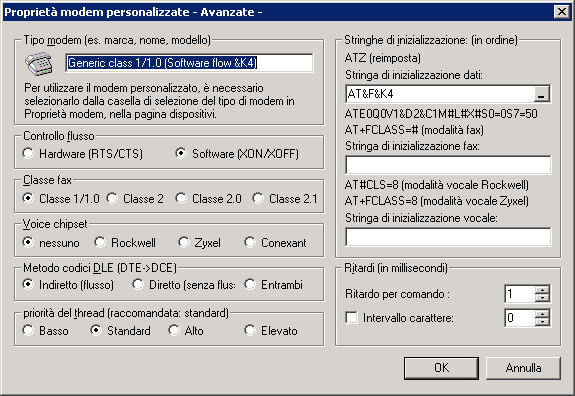 Personalizzare le opzioni seguenti sulla base delle specifiche del modem fax: