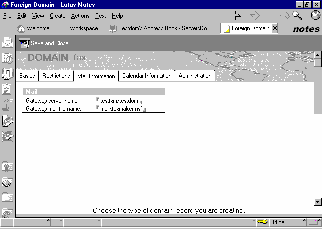 1. Da Lotus workspace, aprire la rubrica e selezionare Server > Domains.