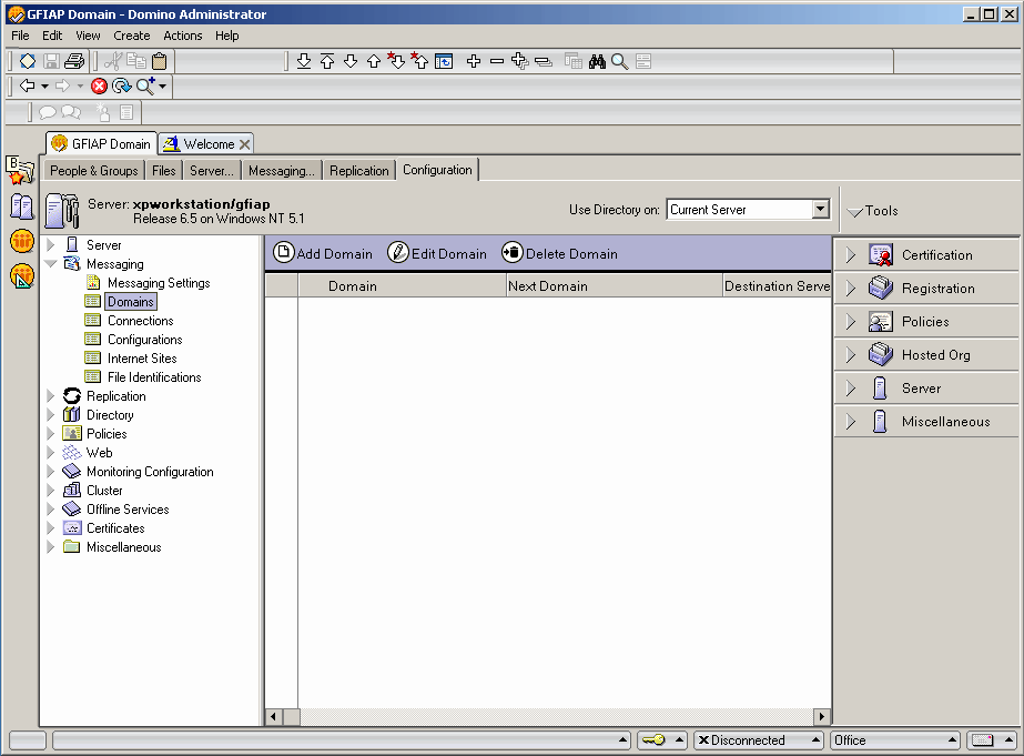 1. Da Domino Administrator, selezionare la scheda Configuration.