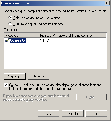 Finestra di dialogo Limitazioni inoltro
