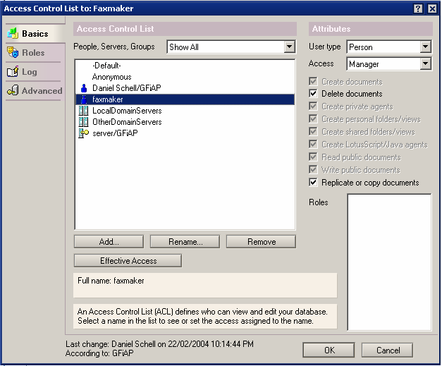 Passaggio 2: Configurazione dell’utente per il database GFI FaxMaker Domino