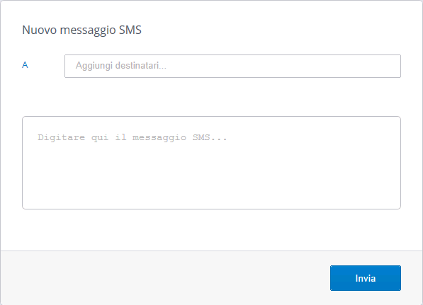 - Nel campo A.. digitare i numeri SMS dei destinatari oppure fare clic su A... per selezionare i destinatari dalla rubrica. Per ulteriori informazioni, fare riferimento a Rubrica client Web.