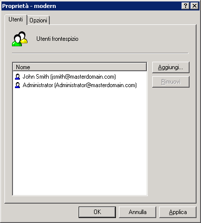 3. Dalla scheda Utenti, aggiungere gli utenti a cui applicare il frontespizio.