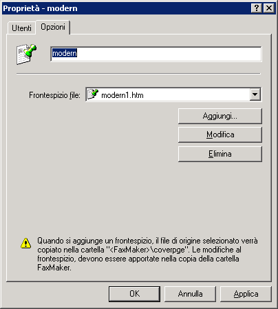 1. Dalla configurazione di GFI FaxMaker, selezionare Frontespizi > Frontespizi.