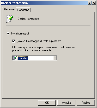 Include un frontespizio solo quando si invia un fax contenente un corpo del messaggio (ad esempio, quando si invia un fax come allegato per posta elettronica e il messaggio contiene anche un corpo del messaggio).