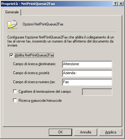 Configurazione delle opzioni di NetPrintQueue2FAX
