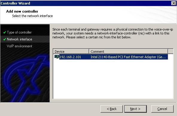 3. Selezionare la nuova scheda di rete che XCAPI utilizzerà per comunicare con il gateway VoIP.
