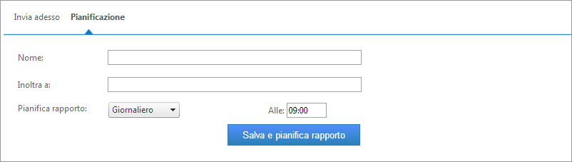 6. Dall’elenco a discesa Pianificazione rapporto, selezionare la frequenza di esecuzione del rapporto. Le opzioni disponibili sono: Giornaliera, Settimanale o Mensile.