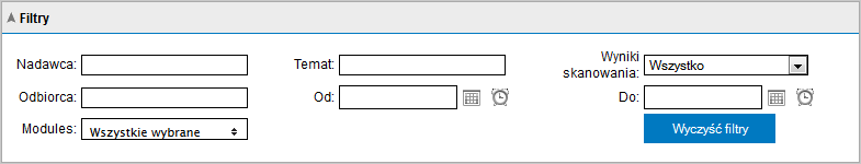 Określ zakres dat/godzin, aby wyświetlić wiadomości przetworzone w danym okresie |