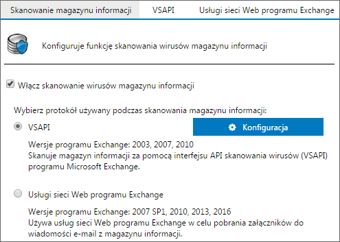 - Na karcie Skanowanie wirusów magazynu informacji zaznacz pole wyboru Włącz skanowanie wirusów magazynu informacji.