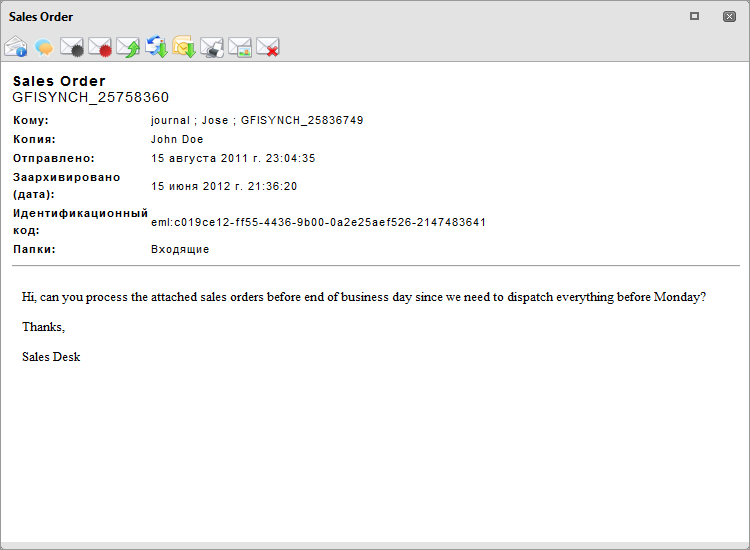 Печать сообщения/элемента календаря Отображает заархивированный элемент в формате принтера в новом окне браузера. Для печати элемента воспользуйтесь функцией печати браузера. |